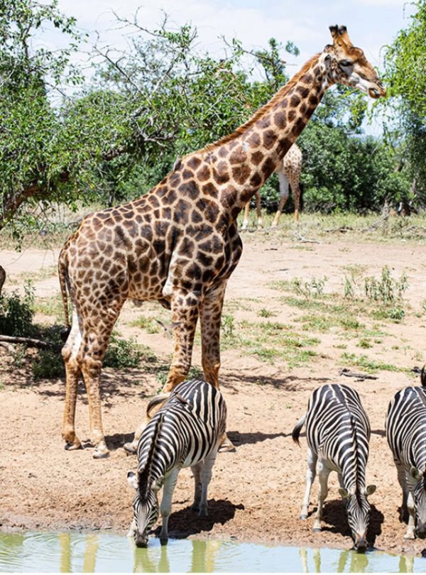 Arrive and enjoy lunch at your lodge, often overlooking a busy waterhole where wildlife gathers throughout the day.